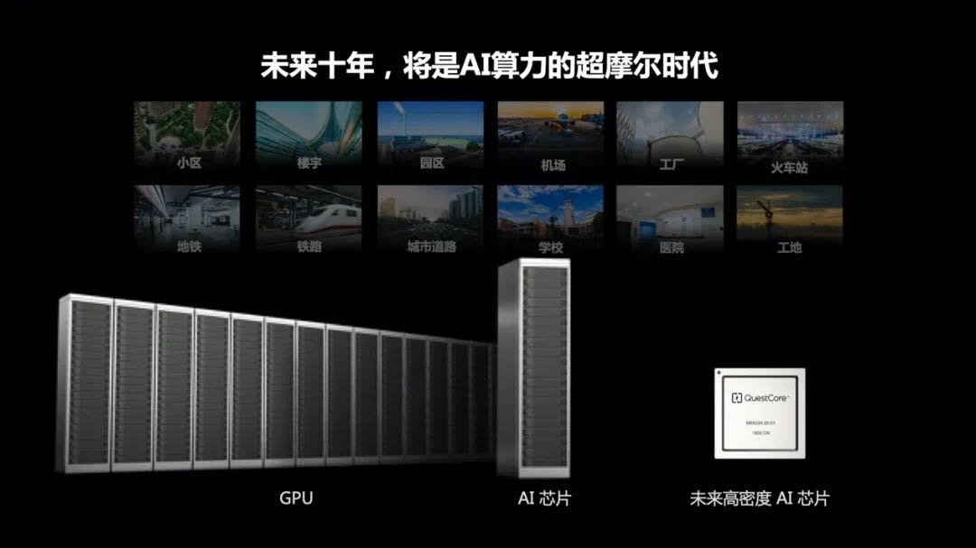 幾年前,一個城市管理要用到的智能計算,需要十幾個機柜提供算力支持,需要非常大的空間、投資以及大量的能耗;一年前,由于AI芯片性能的提升,已經能夠由十幾個柜降到一個機柜。