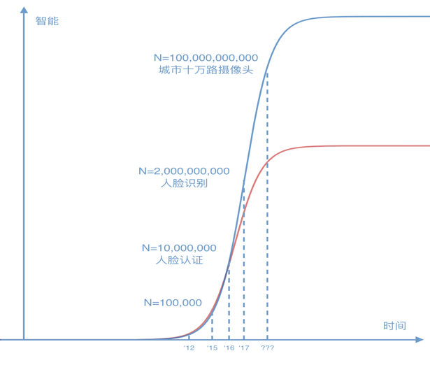 從S曲線中,可以看到過去5年,AI的發(fā)展及其迅猛,單門類(人臉識別)算法有了萬倍的增長。但我對未來更加憧憬,即S曲線中2018年之后的曲線有多陡。AI發(fā)展帶來的多維度技術(shù)和各場景深度結(jié)合、疊加會帶來更有沖擊力的體驗。從多技術(shù)維度來說,從視覺,到聽覺、語義理解、運動控制會在之后幾年都會快速突破;和芯片結(jié)合,端智能滲透到與用戶的最后30公分的交互體驗,從Internet Of Things向Internet Of Intelligence跨越,讓智能無處不在。